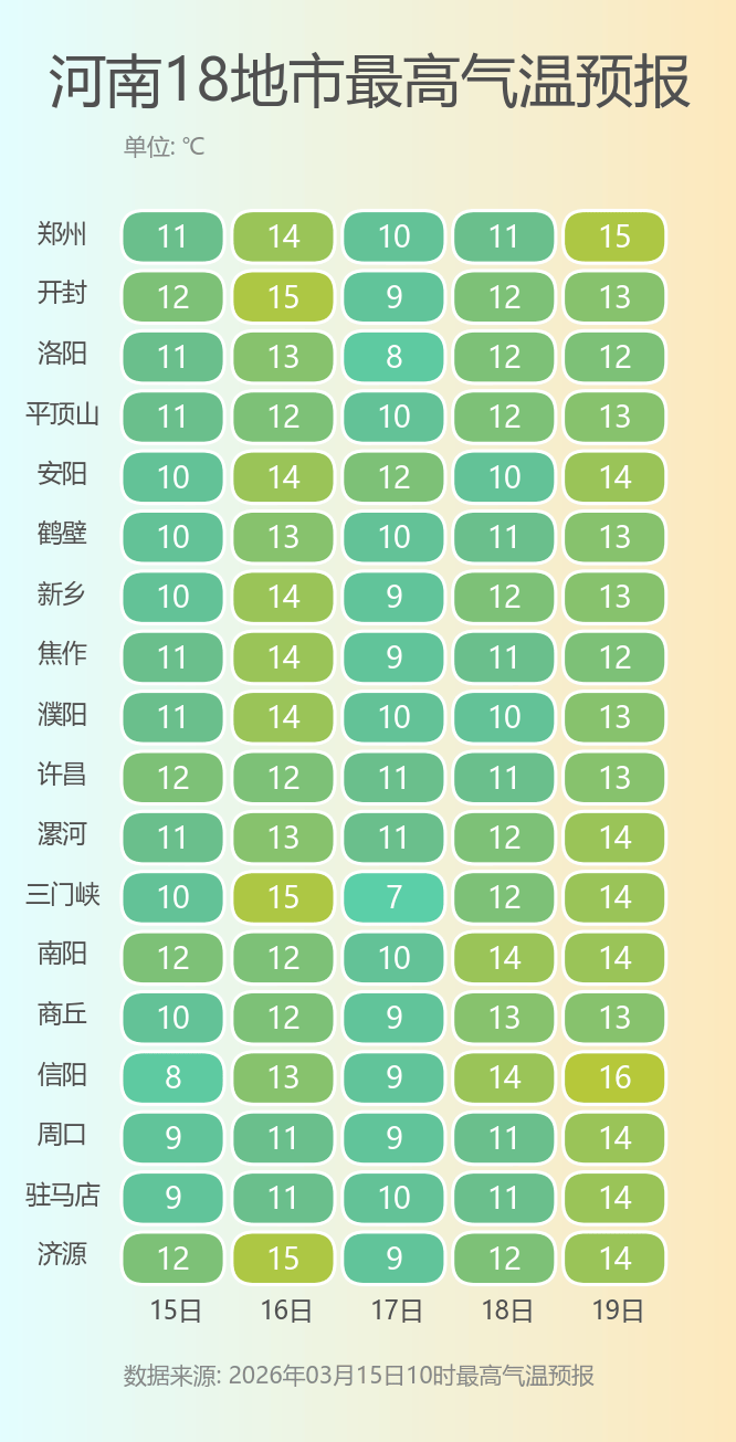 气温的变化是近期民众关注的焦点。在雨水与弱冷空气的反复“打压”下,本周四之前,河南大部地区的气温很难有起色,最高气温基本在10℃至15℃之间徘徊。这种持续的低位运行,让不少人感叹“脱掉的羽绒服又穿了回来”。