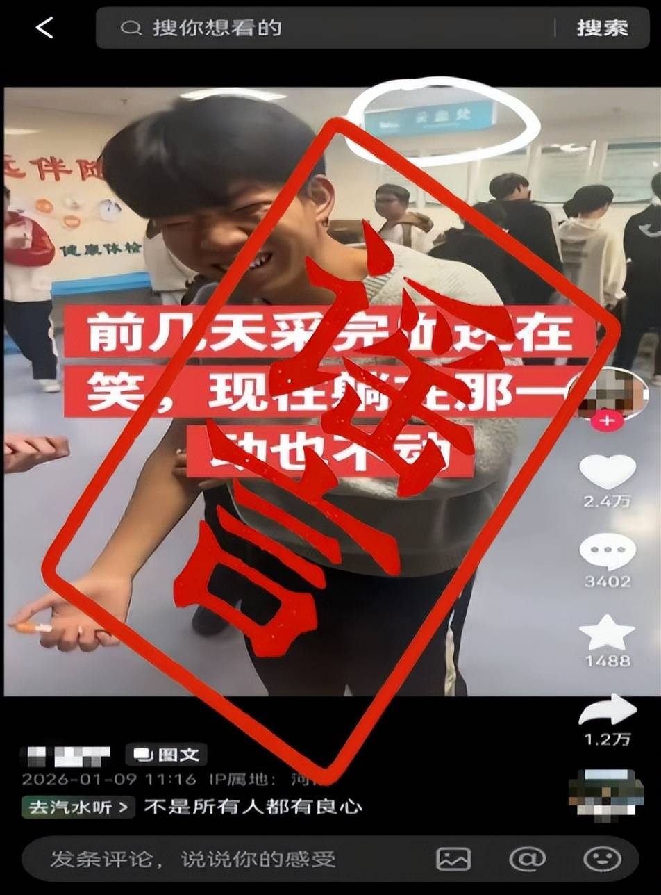 网民苏某华为博取关注、吸粉引流,编造发布“学生在校体检抽血后死亡”的虚假信息。经公安机关调查,已依法对苏某华作出行政处罚。