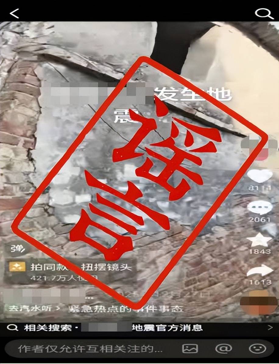 网民张某杰为博取关注、吸粉引流,编造发布“某地区地震”的虚假信息。经公安机关调查,已依法对张某杰作出行政处罚。