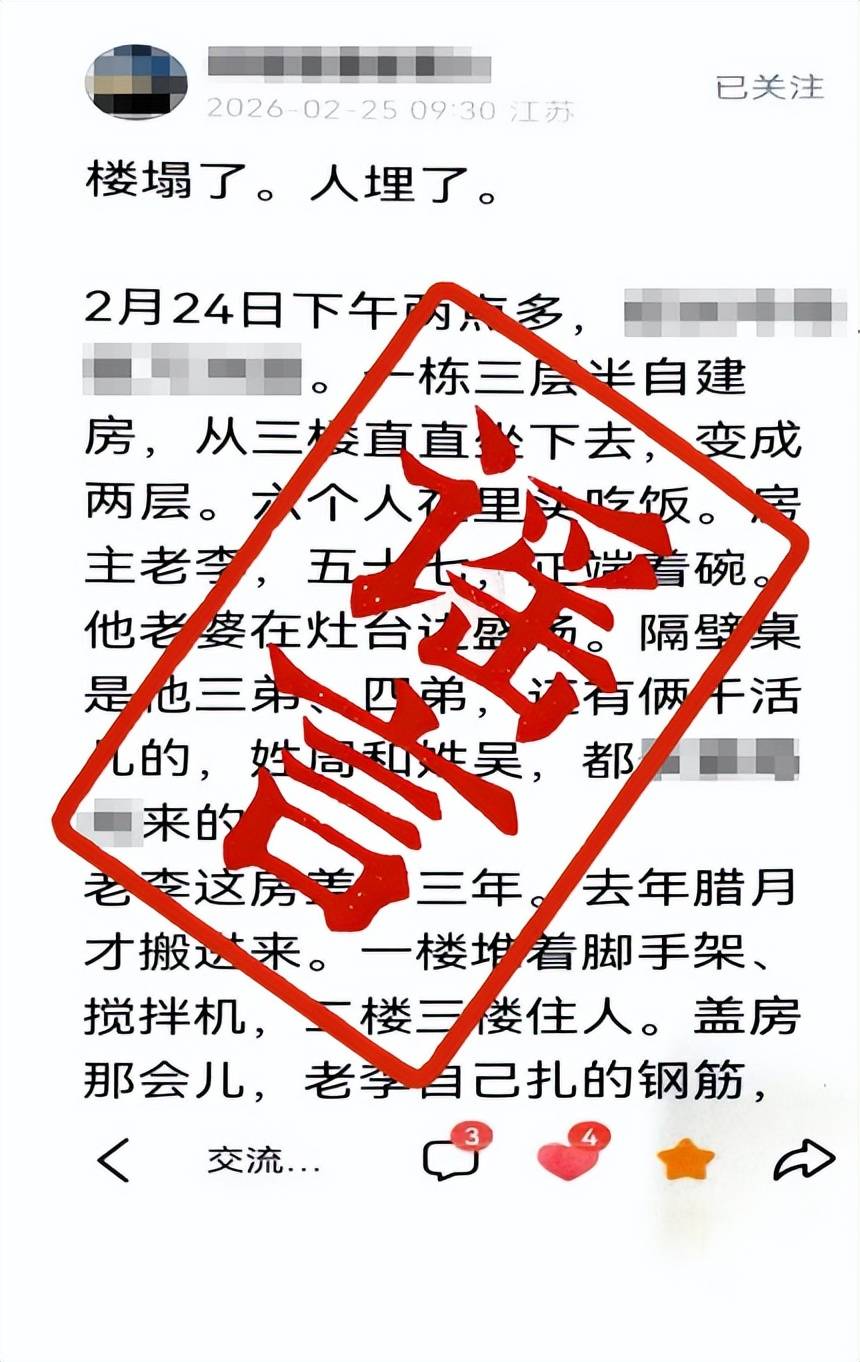 网民廖某某为博取关注、吸粉引流、赚取网络平台佣金,利用AI软件编造发布“某地一栋三层半自建房坍塌,6人被埋”的虚假信息。经公安机关调查,已依法对廖某某作出行政处罚。