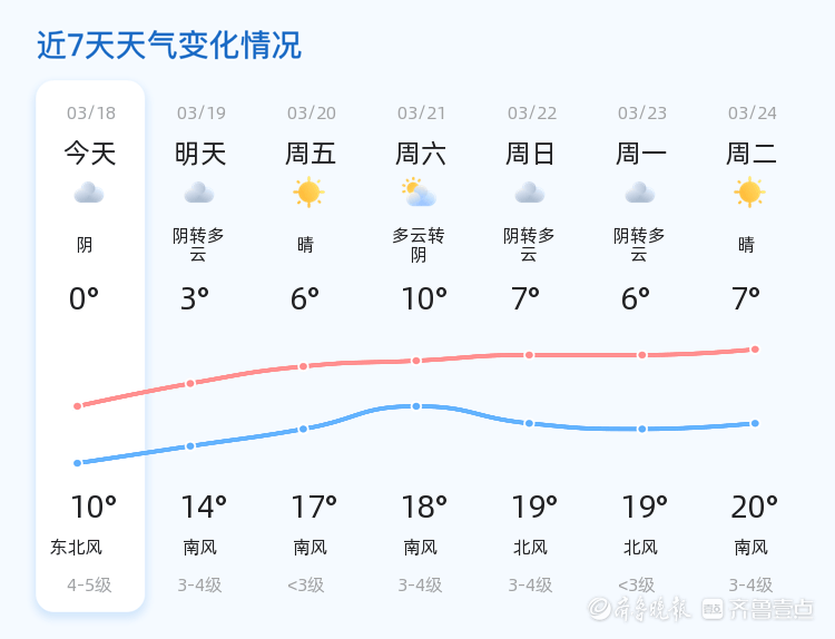 未来三天,聊城市的气温将呈现逐步回升的趋势,最高温度将达到17℃,最低温度保持在0℃左右。其中,3月20日为晴天,3月21日为多云转阴,3月22日至3月23日则以阴转多云为主。建议市民根据天气变化适时增减衣物,特别是在阴雨天气中,注意防滑和行车安全。