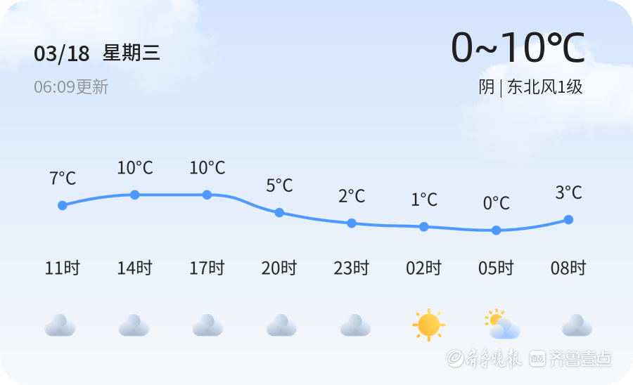 今天是3月18日,星期三,农历正月三十。聊城市的天气以阴为主,温度在0℃到10℃之间,东北风1级,空气湿度高达98%,PM2.5指数为126,属于轻度污染。市民外出时请注意防风保暖,并关注空气质量对健康的影响。