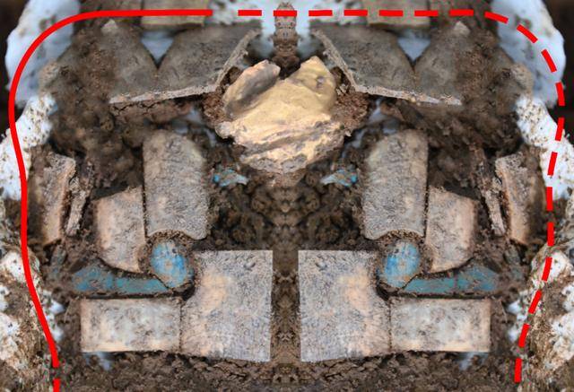 郑州商城西南部M47出土的兽面镶嵌器(右侧为复原)