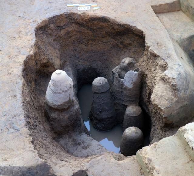 水利系统主要分布于内城东南部,由1段自然河道改造段和2段人工开凿沟渠组成,总长约540米,最宽12米、最深4米,内设石砌挡水墙、分流设施,形成互通互联的水网体系。同时发现高规格夯土木构水井,并首次出土夏商时期的青铜材质双系汲水罐。