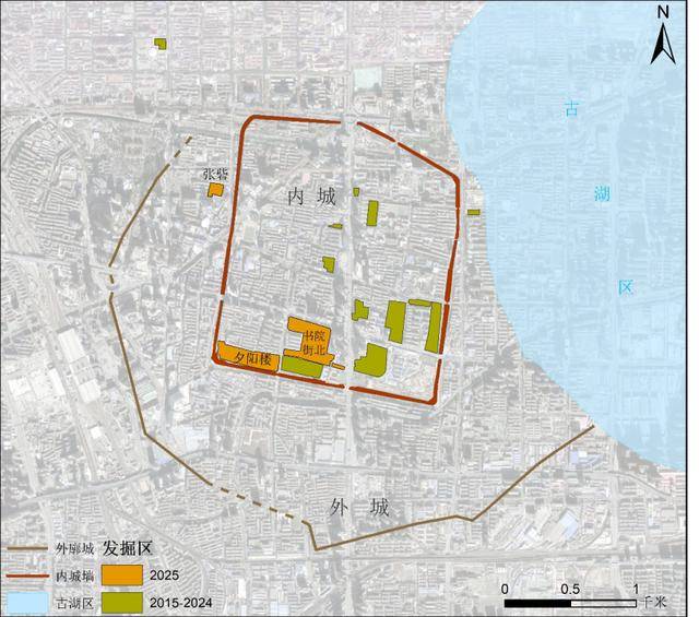郑州商城2015年至2025年发掘项目位置图1
