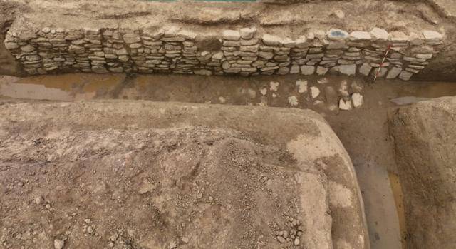 郑州商城东南部水系遗存:石砌挡水墙(从北向南)