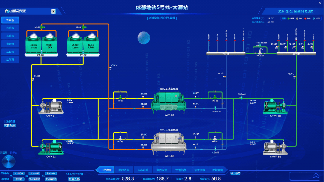 这些传感器如同灵敏的“神经末梢”,每分钟采集一次温湿度、二氧化碳浓度等数据,这些数据实时回传至智能控制系统,系统自动比对“动态标准”,并远程精准调控通风空调设备的运行模式。相当于为整座车站空调配置了一位“智能管家”,实现分区域、按需求的分钟级自动调节,全程无需人工干预。