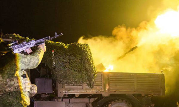 俄罗斯军人正在击落乌克兰无人机塔斯社