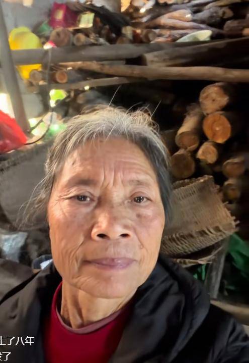 视频中,王女士面对镜头,身后的柴火堆得整整齐齐,几乎和墙一样高——那是儿子8年前离家前,亲手为她劈好的最后一堆柴。