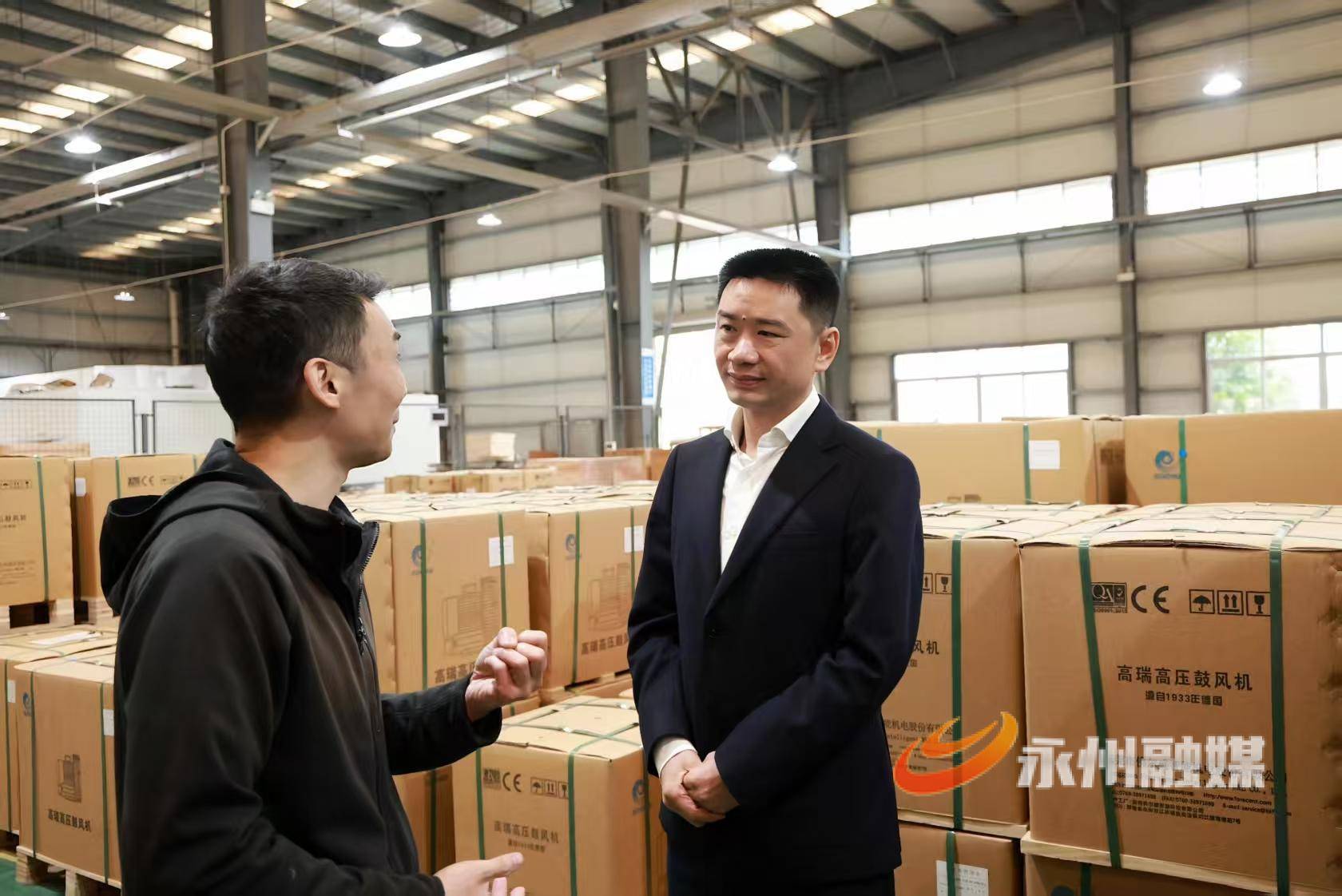 随后,袁章中一行来到江华高新区,实地走访调研湘北新型建材和佛尔盛智能两家企业,深入企业车间与负责人面对面交流,详细了解企业生产经营、市场订单、产业链供应链、技术创新、安全生产及用工保障等情况。湘北新型建材深耕于沥青混合材料生产行业,是海螺水泥配套企业,生产能力位居行业前列;佛尔盛公司生产的高压风机在生产规模、产品质量、技术水平、管理品质等多方面处于全国同行业的领先地位。袁章中为企业的持续健康发展感到高兴,并鼓励企业进一步坚定发展信心,立足自身优势,紧密对接市场需求,抢抓发展机遇,不断提升核心竞争力,努力实现更高质量的发展。他指出,企业是县域经济发展的主力军和顶梁柱,各级相关部门要持续优化服务保障,主动对接企业发展需求,加强政策辅导和帮扶指导,推动各项惠企政策落地落实,用心用情帮助企业纾困解难,让企业集中精力专心专注于自身发展。同时,要求企业要筑牢安全防线,时刻绷紧安全生产这根弦,严格落实主体责任,坚决防范遏制各类生产安全事故,确保企业平稳健康运行。