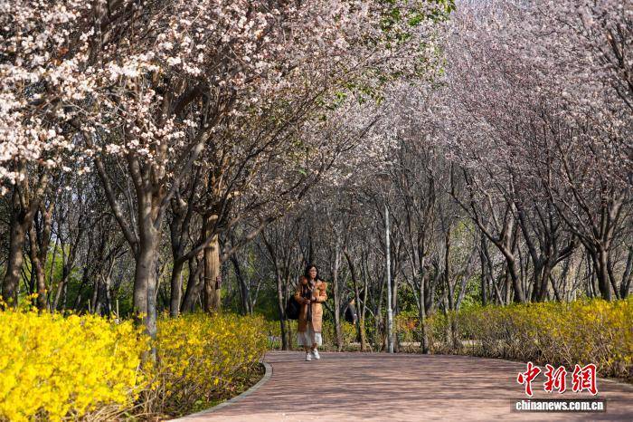 3月20日,河南郑州,当日正值春分节气,市民来到郑州植物园踏青赏花,乐享春日时光。中新社记者 范晓恒 摄