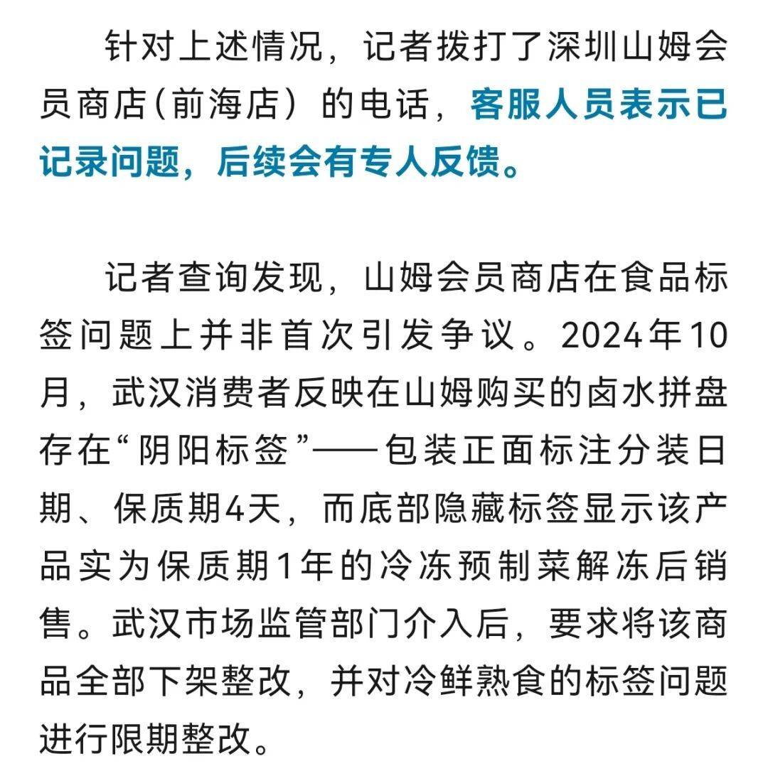 3月19日,深圳网友姜女士在社交平台发帖称,她于18日在深圳山姆会员商店(前海店)购买了黑猪瘦肉和猪肋排,回家后发现黑猪瘦肉的猪是2025年11月9日宰杀的。