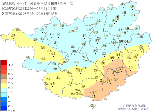 相关数据显示,3月20日上午8时至21日上午8时,广西出现较大范围阴雨天气,桂林、柳州等市局地出现中雨或大雨。全区大部最高气温22~28℃,最低气温“1”字头。