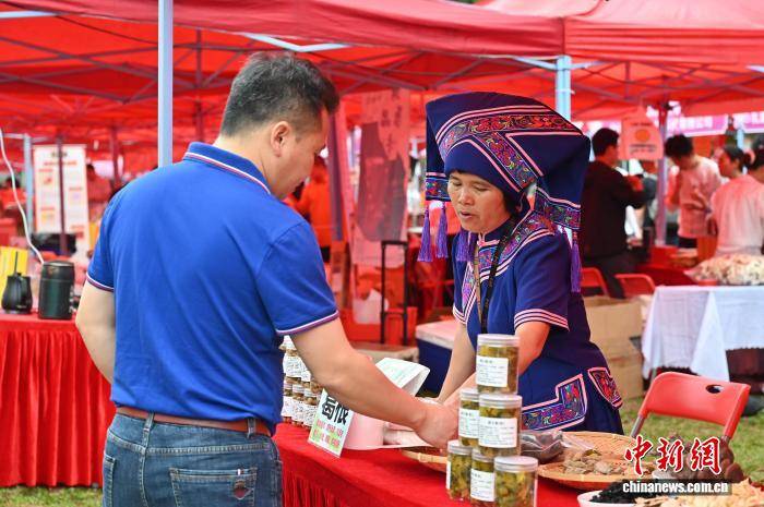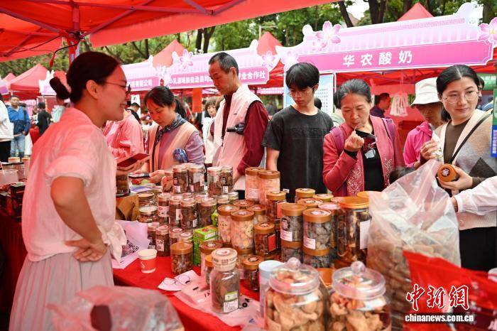 3月21日,位于广州市的华南农业大学举行首届紫荆雁归节。作为该校搭建的集校友联络、成果展示、文化交流与产业服务于一体的综合盛会,本次活动邀请来自粤、桂、皖、黔、渝五省(市、区)的200余名“头雁”学员重返母校,携家乡特色农产品和创业成果共赴春日之约。图为广东化州橘红等产品吸引民众试吃选购。中新社记者 陈楚红 摄