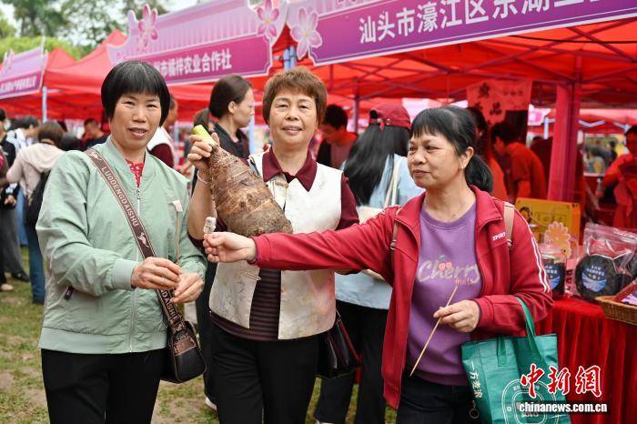图为现场展销的芋头吸引市民合影。中新社记者 陈楚红 摄