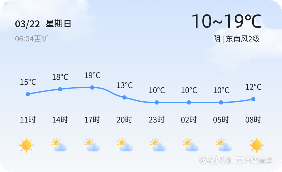 今天是3月22日,星期日,农历二月初四。济宁市天气阴沉,气温介于10℃至19℃之间,东南风2级,空气湿度较高,达到77%。空气质量方面,PM2.5浓度为130,属于中度污染,建议市民外出时佩戴口罩,减少长时间户外活动,尤其是敏感人群更应注意防护。阴沉的天气可能对交通出行造成一定影响,市民出行时请提前规划路线,注意安全。今天的阴天可能会持续至明天,市民需做好防风保暖措施。