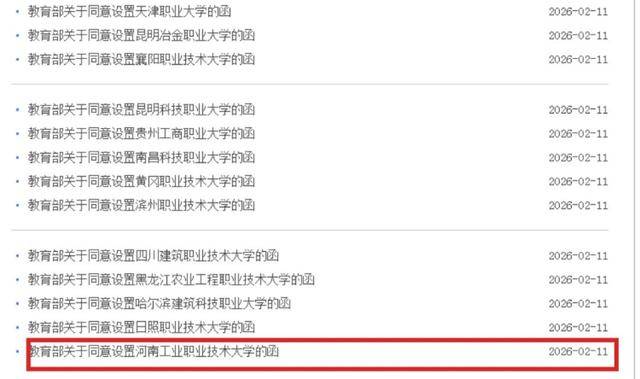 近日,教育部发布了一批同意高等学校设置的函,涉及11所高校更名大学、15所职业本科设置。其中,同意以河南工业职业技术学院为基础设立河南工业职业技术大学,该校升格为公办本科层次职业学校。