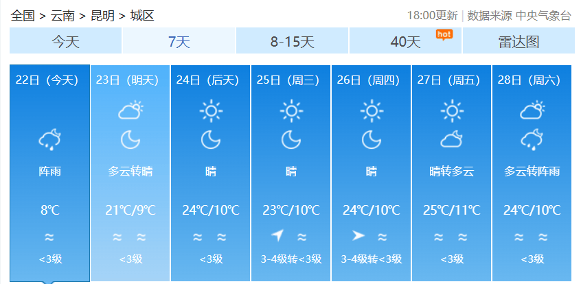 昆明天气预报
