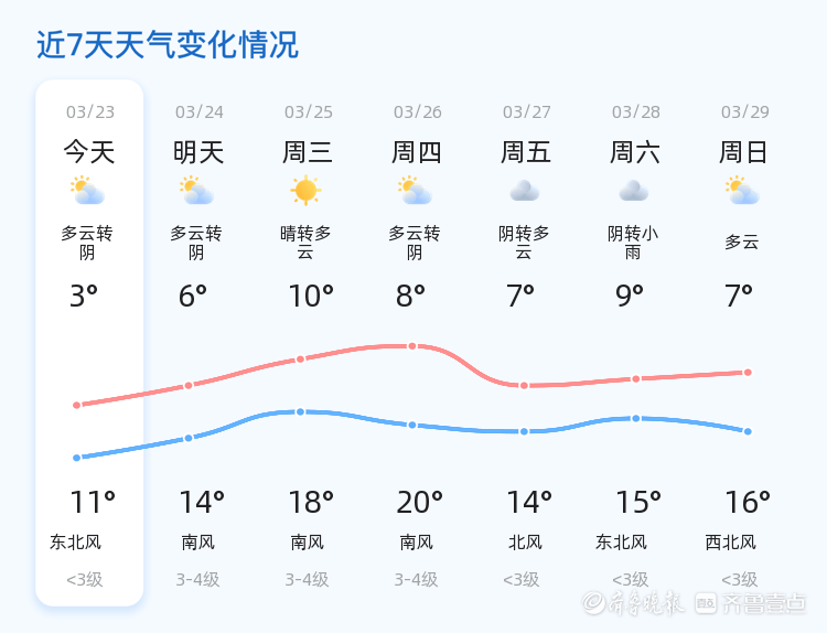 未来三天,威海市天气趋势为先晴后雨。周三为晴转多云,气温继续上升,最高气温可达18℃,最低气温为10℃;周四为多云转阴,气温有所下降,最高气温为20℃,最低气温为8℃;周五为阴转小雨,气温维持在7℃至14℃之间。周六有小雨,气温为9℃至15℃,周日天气多云,气温为7℃至16℃。市民需注意天气变化,及时增减衣物,雨天出行请携带雨具,确保安全。