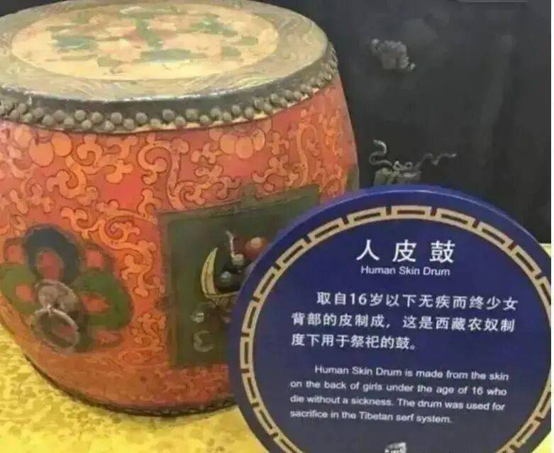关于阿姐鼓的制作是官方发布的,也是众所周知:女婴出生时割掉舌头、扎聋耳朵,在未受过情爱的情况下长到16岁时,直接凿开头骨,往体内浇筑水银。随着水银灌满全身,女孩的皮肤在意识丧失前,会被整块剥下来制成人皮鼓,用作西藏喇嘛祭祀的重要工具。被选上女孩的父母,非但没有一点悲痛,还会感到无上的荣耀。这就是曾震惊一时的西藏“人皮鼓”。随着新中国成立,这一残忍的祭祀形式也被一并废除。