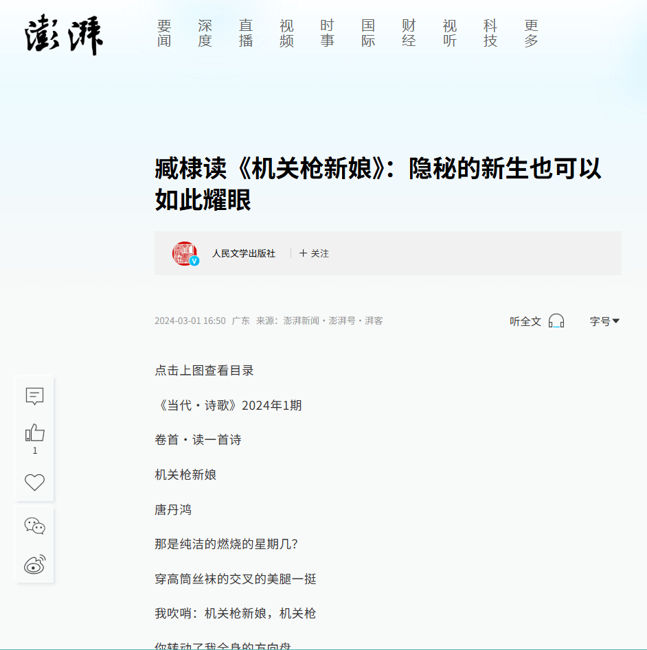 这个女诗人,大家也看到了,名叫唐丹鸿。