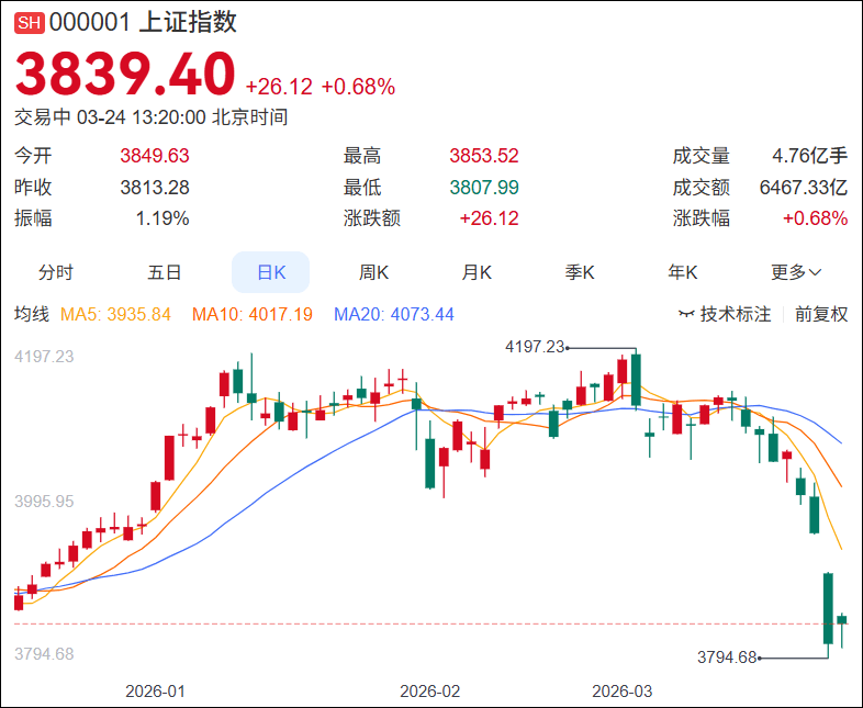 招商银行研究在最新报告中称,3月23日A股大幅调整,根本原因仍在于中东局势升级引发的滞胀紧缩预期,这是对权益资产最不利的宏观组合。