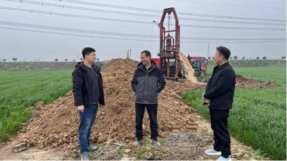 近日,在河南省驻马店市上蔡县刘岳村,绿油油的麦田里一派火热景象。打井、修路、通渠,机械设备往来穿梭。昔日“浇水难、行路难”的地块,正一步步向“田成方、路相通、渠相连、旱能浇、涝能排”的高标准农田蜕变。