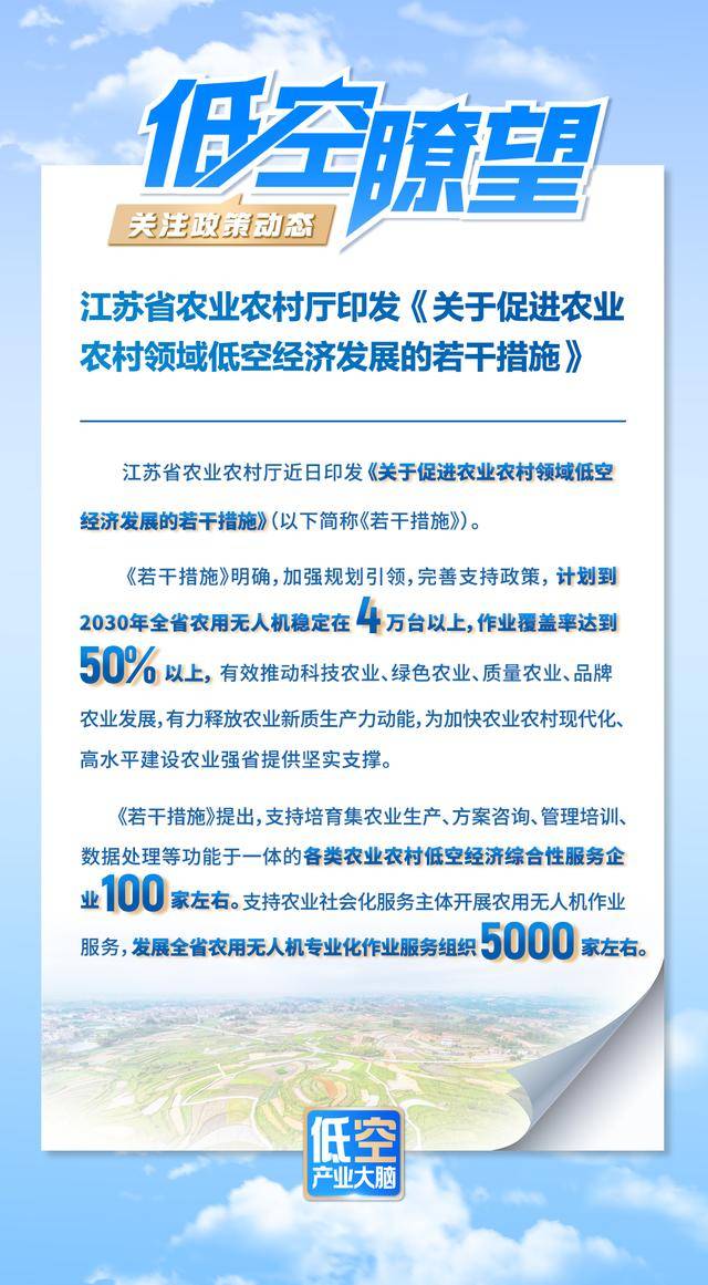 【低空瞭望】江苏省农业农村厅印发《关于促进农业农村领域低空经济发展的若干措施》