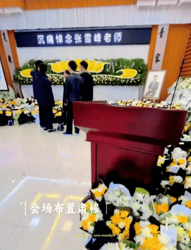 搜狐娱乐讯 3月28日,张雪峰的追悼会在苏州殡仪馆举行,悼念会的会场布置的很肃穆,到处都是黄色的、白色的菊花,全部都是黑色包装的花束