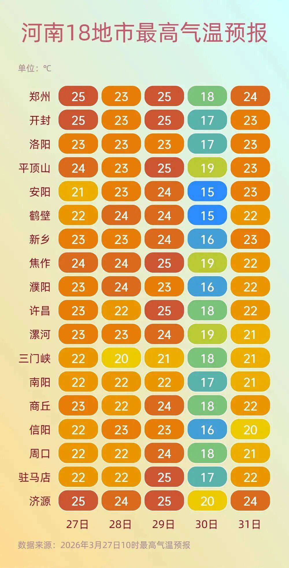 最高气温:22~23℃