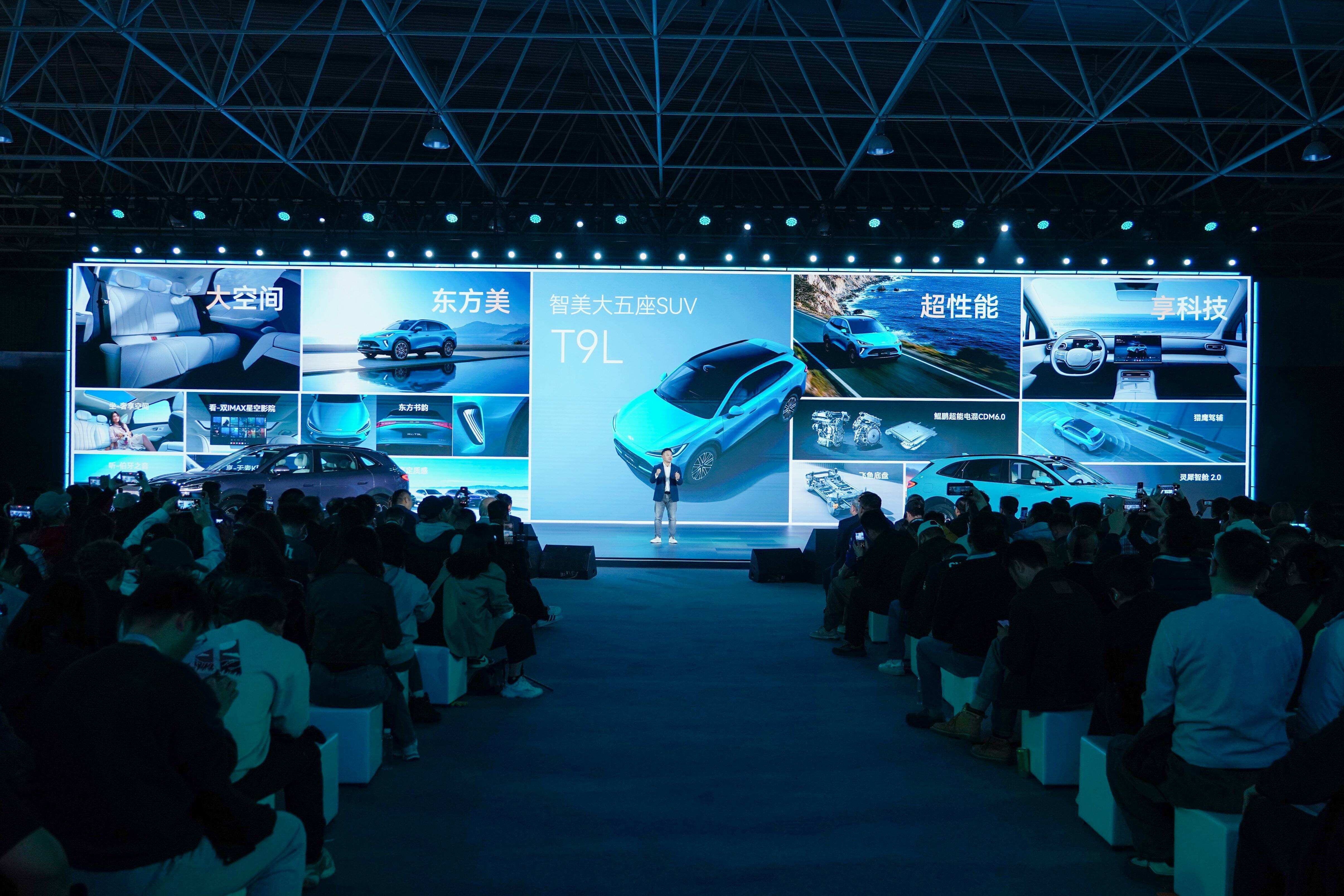 作为风云品牌“大、美、超、享”四大核心价值的集大成之作,风云T9L以9大同级唯一、多项同级第一的越级配置,在13.99万元-16.99万元的预售价格区间内,重构了家用SUV价值标准。“大”是风云T9L的空间底气——车身尺寸4870mm×1930mm×1710mm,拥有2920mm同级最长轴距,打造同级最大2米级乘员舱,二排腿部空间1037mm、膝部空间211mm,全车38处储物空间,后备箱常规容积573L、放倒后拓展至1597L;同级唯一前排双零重力座椅,主副驾均支持16向电动调节、3档通风/加热/按摩,二排座椅支持25-35°电动调节并标配通风加热,同级唯一前排+后排双大床模式可实现超1.8米平躺空间。“美”是风云T9L的东方神韵——以中国水墨书法为核心灵感打造“东方书韵”原创设计语言,点墨大灯、银钩腰线、山影叠镜、水墨长虹尾灯,与敦煌画院联合打造的鸣沙翠专属车色采用8层车漆工艺,15年光泽保持率85%;文房雅居座舱以“墨案铺陈、宣纸承托”为理念,60%大面积软质包覆,256色流萤氛围灯如墨汁荡漾,同级唯一23扬伯牙之音音响实现7.1.4.2全景声布局。“超”是风云T9L的性能实力——搭载鲲鹏超能电混CDM6.0系统,实现“235”全能实力:综合续航超2000km、馈电油耗低至3.9L/100km、5秒级零百加速;1.5T混动专用发动机热效率达45.79%,斩获“中国心”十佳发动机称号,DHT260混动变速箱实测峰值转速26407rpm同级第一,最高98.5%机械效率。“享”是风云T9L的智能守护——猎鹰700高阶驾驶辅助系统采用一段式端到端神经网络架构,560TOPS算力、27个传感器,实现无图全域通开;灵犀智舱2.0搭载同级唯一3nm制程车规级座舱芯片,13亿参数AI本地语音大模型支持全场景免唤醒对话;磐石车身采用85%高强度钢板覆盖、21%热成型钢占比,全系标配7安全气囊,满足全球7大最严安全标准。