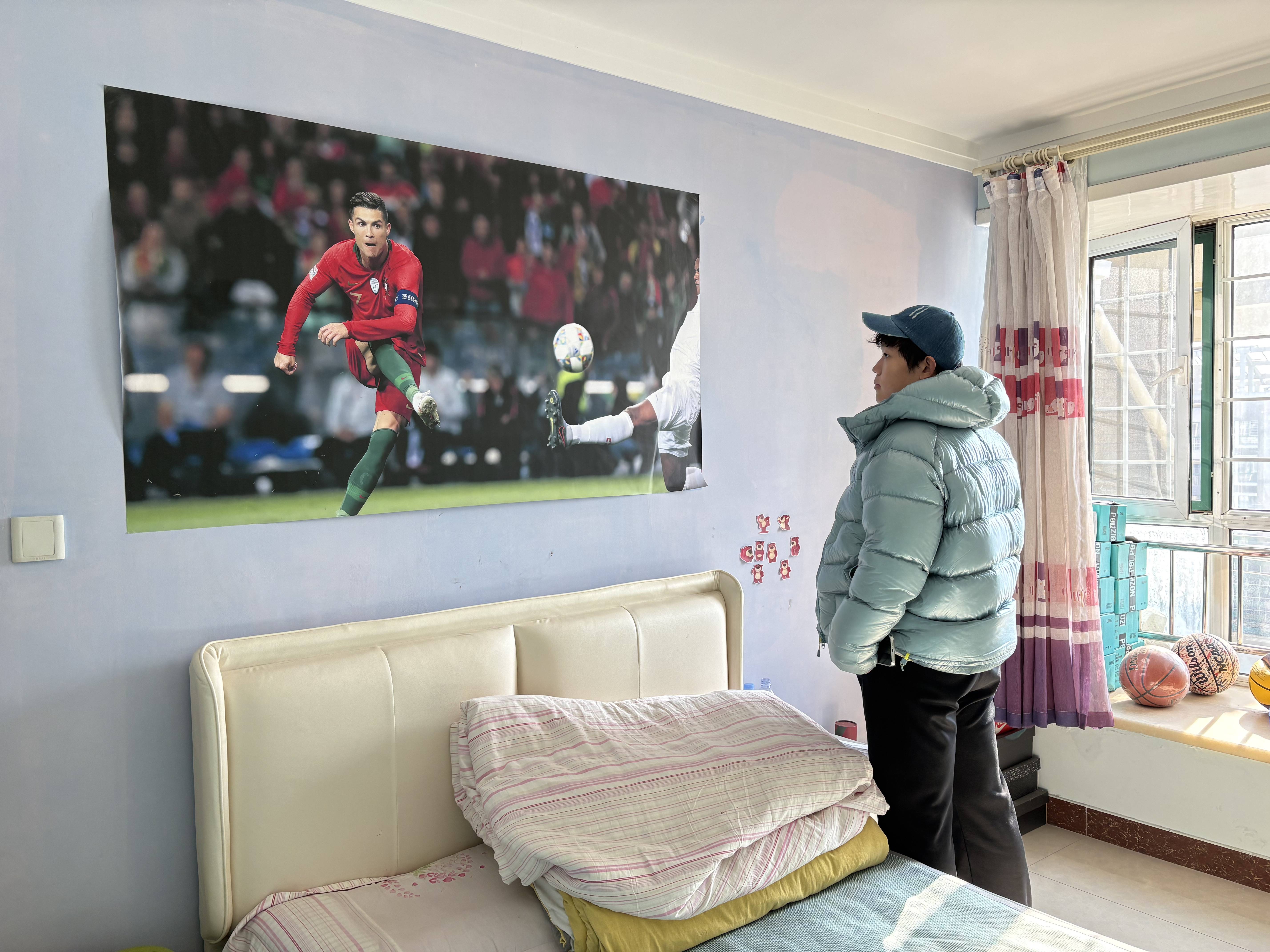 二儿子回家后,乔守芬把小儿子的房间腾出来,还特意装修了一遍,墙上贴着C罗的海报,飘窗上放着篮球足球,收拾得干干净净。