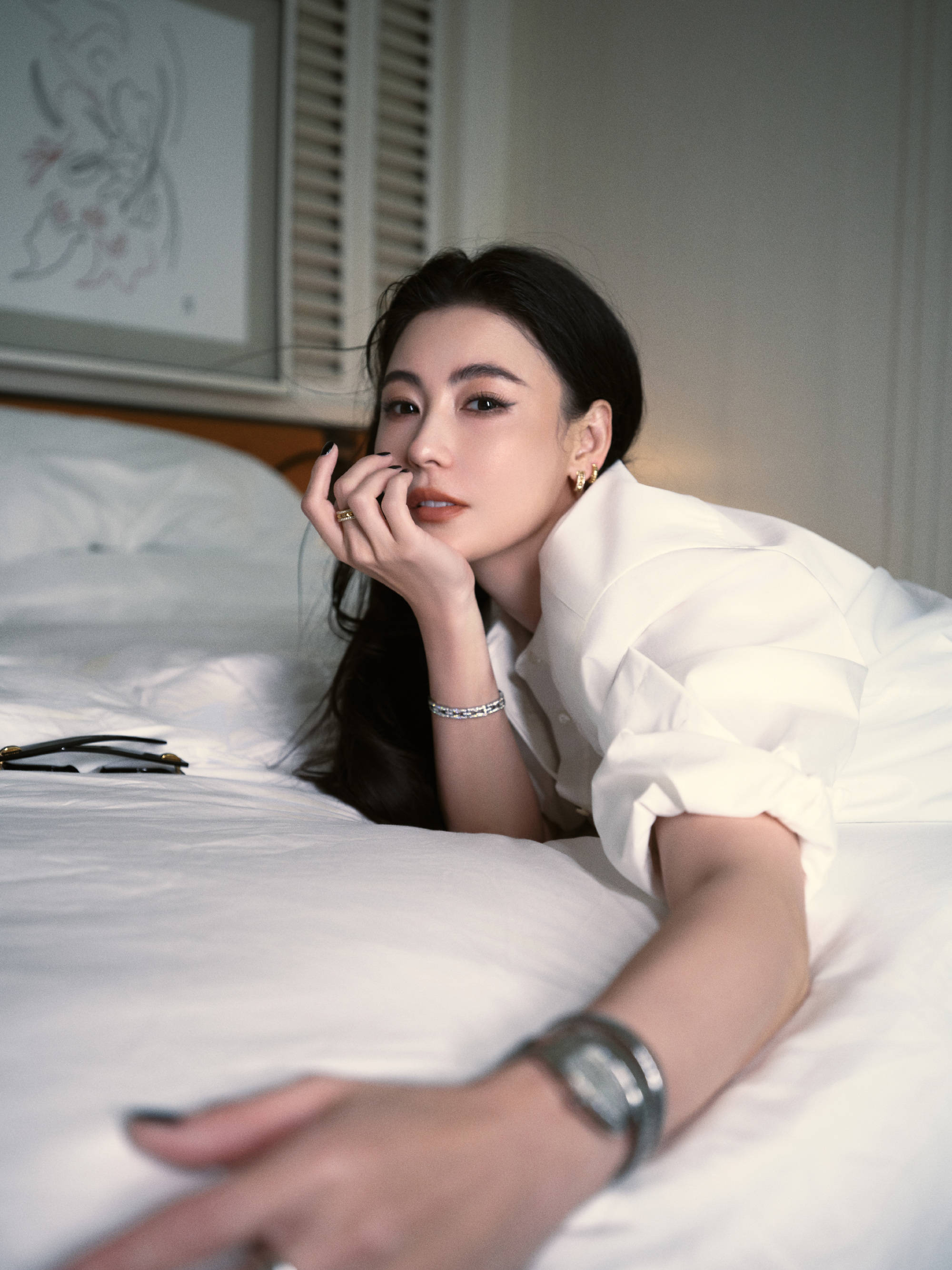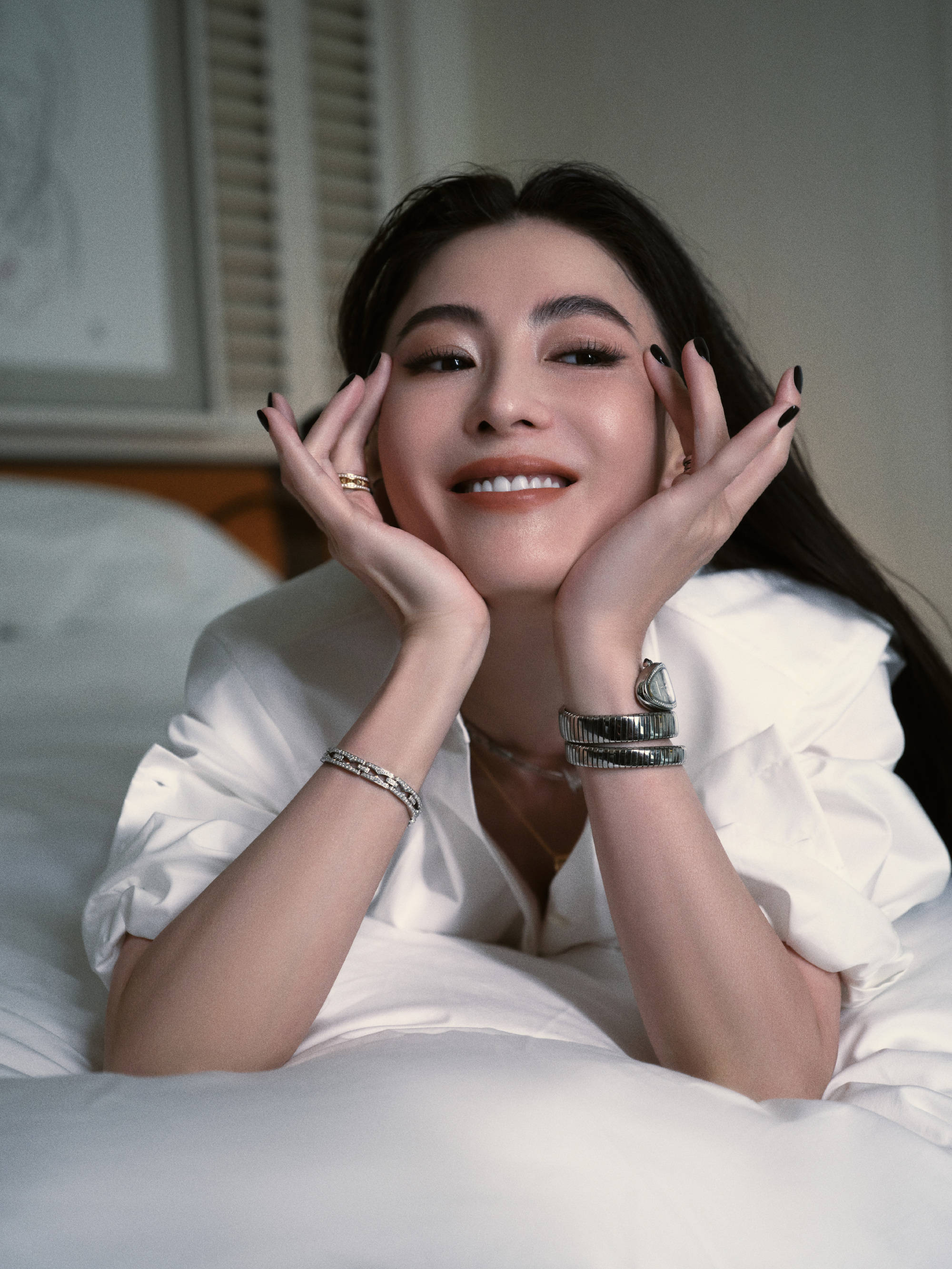 搜狐娱乐讯 27日,张柏芝拍摄的松弛感大片曝光,她穿着白衬衣趴在床上,双手捧脸露出甜美笑容,十分惬意!