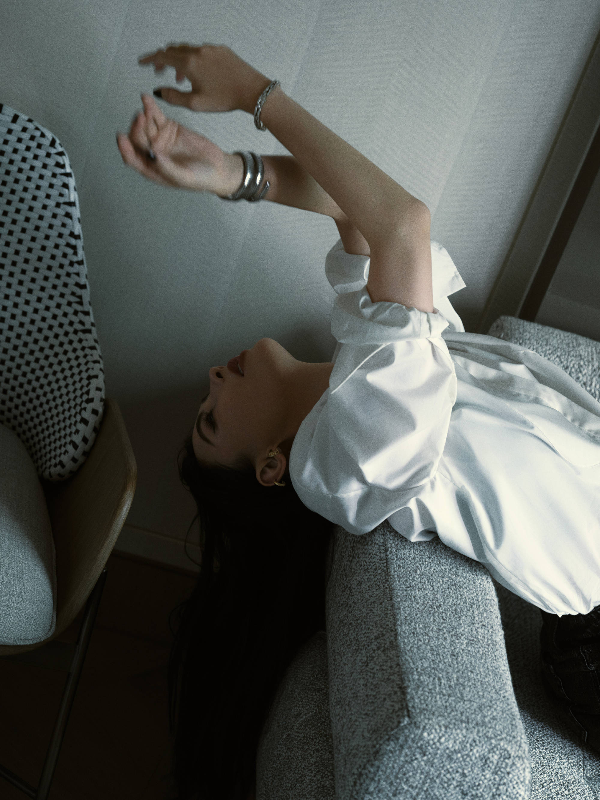 张柏芝靠在沙发上,松弛感拉满。