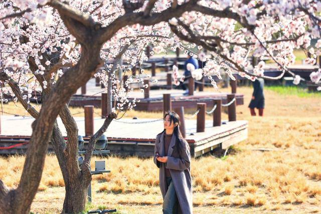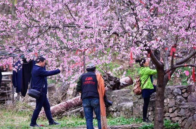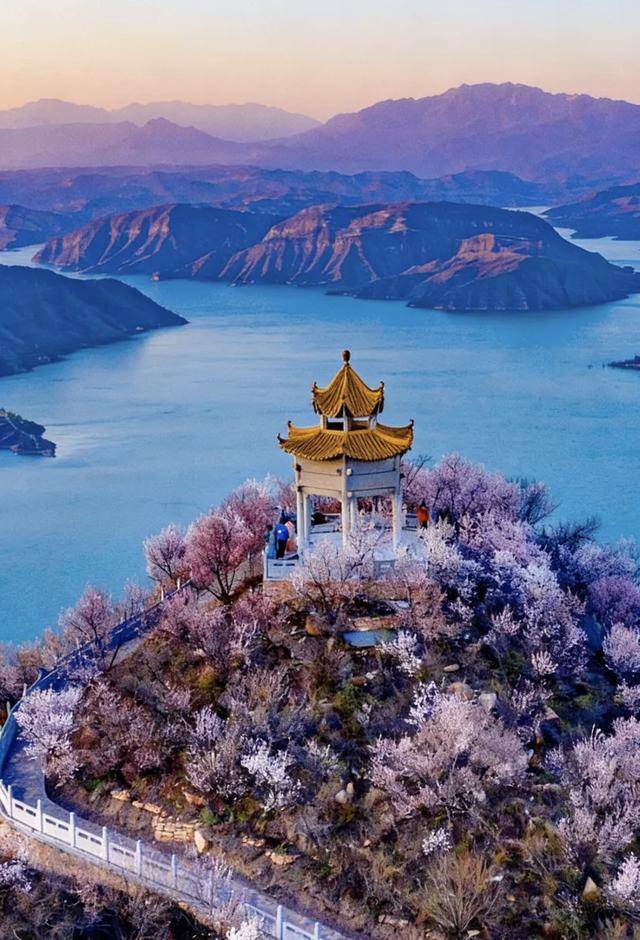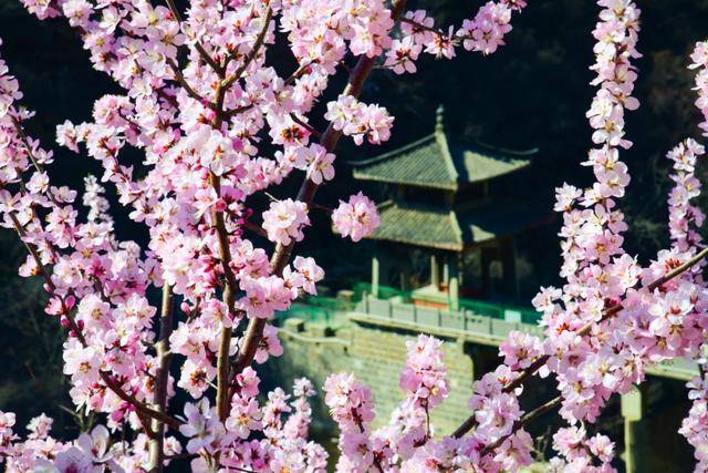 万亩桃林如粉色云霞般铺陈在黄河两岸