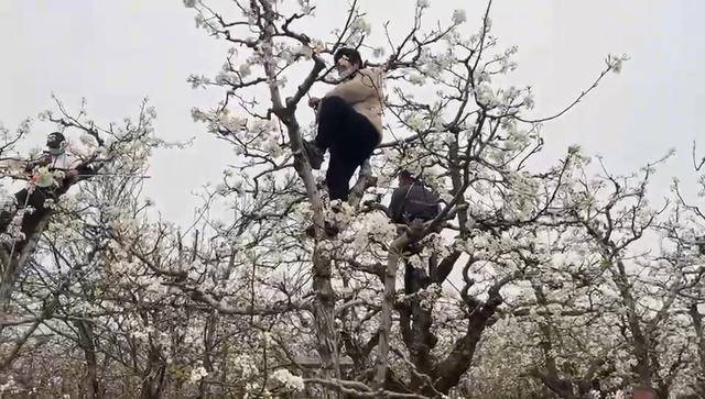 走进梨园,暖风裹挟着淡淡的梨花香扑面而来,虬曲苍劲的枝干上,一簇簇梨花如云似雪。花丛间,村民张女士正俯身忙着“点梨花”:“这几天正是花期最盛的时候,一刻也耽误不得。”在她身后,几十位村民错落分散,有的专注授粉,有的小心翼翼采摘新鲜梨花。