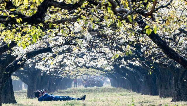 临近中午,游客越来越多。有人漫步花海拍照,有人围坐在梨树下品尝农家饭。梨农还在点花、摘花,他们知道,所点的每一朵花秋天都会变成一个金灿灿的梨。“今年花开得好,秋天肯定是个丰收年。”