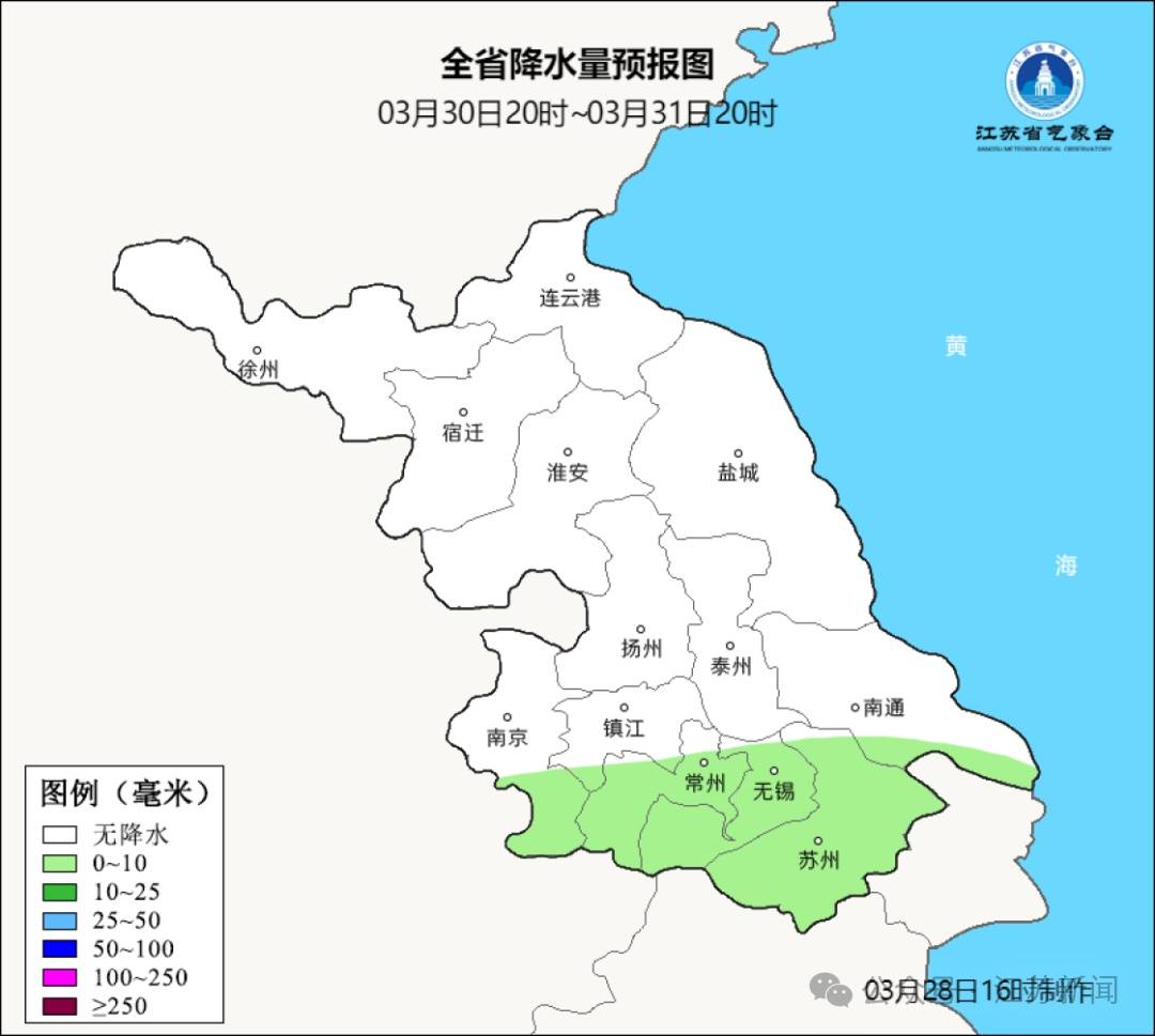 30日江苏有一次降水过程,其中沿江和苏南地区雨量较大。30日全省风力较大。