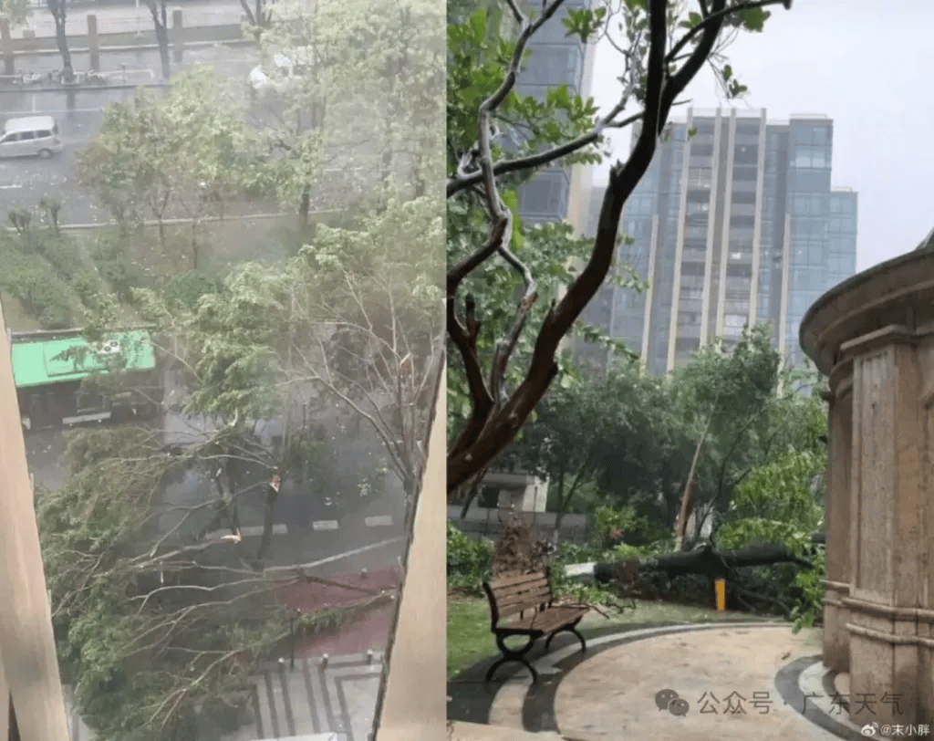 14:40左右佛山南海狂风暴雨,出现树木倒伏等情况。摄:微博网友@末小胖