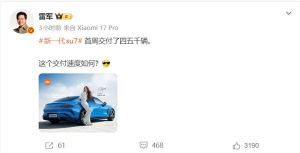 3月23日的首批交付活动上,雷军更是亲自到场为车主开门,诚意拉满。根据雷军公布的最新数据,新一代SU7首周就交付了四五千辆,一改以往动不动等车半年的吐槽。