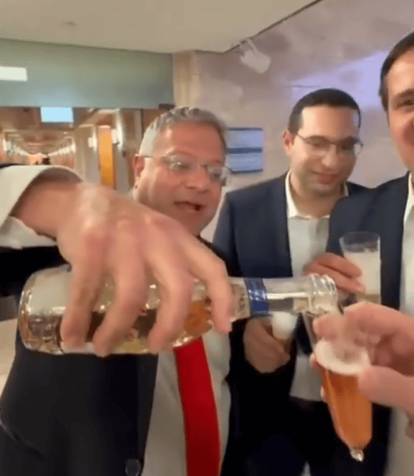 以色列国家安全部长本-格维尔手握香槟庆祝法案通过半岛电视台