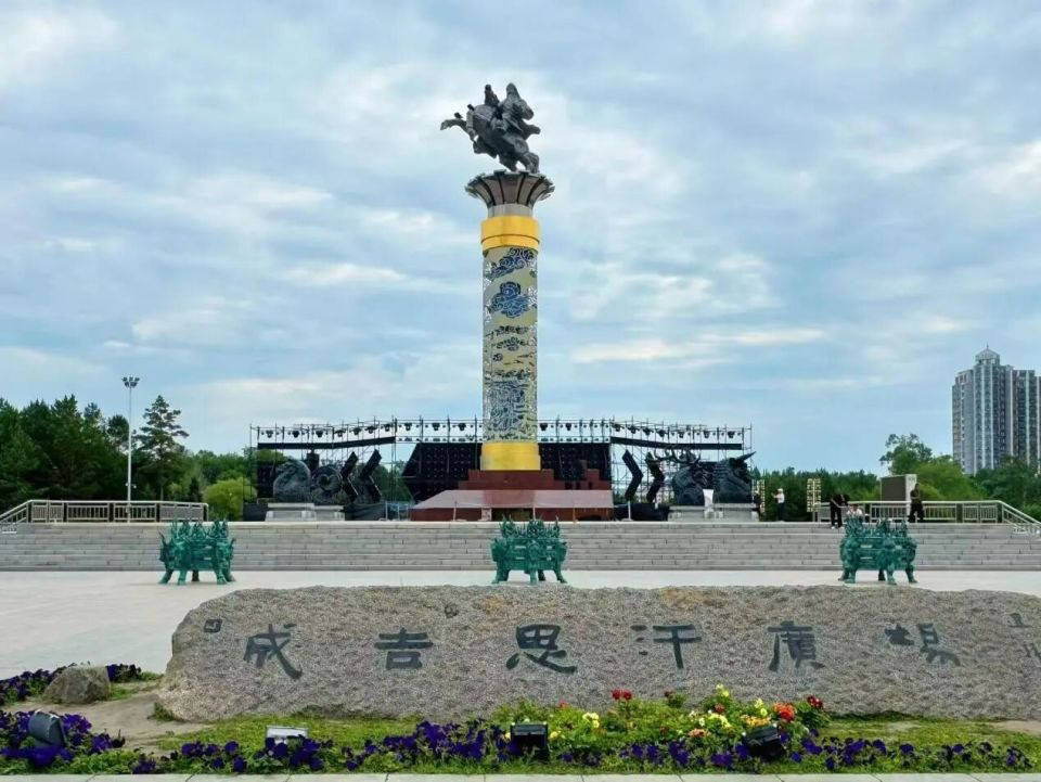 连辑为成吉思汗广场题的字。
