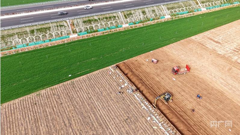 孟州市城伯镇岑村农田里,农户抢抓农时采收铁棍山药(央广网发 张泽斌 摄)