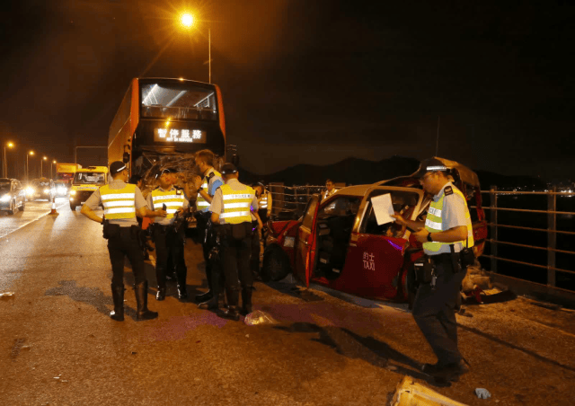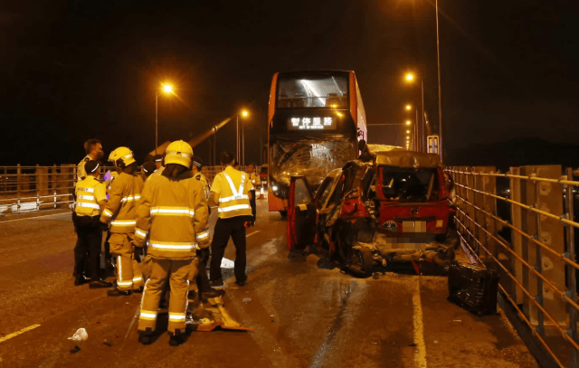 当晚11时16分,一名49岁男子驾驶公交车沿青屿干线往香港机场方向行驶时,其间撞上一辆停靠在青马大桥上的出租车。 一名66岁男出租车司机及一名37岁男乘客被困车内,其后被消防人员救出。