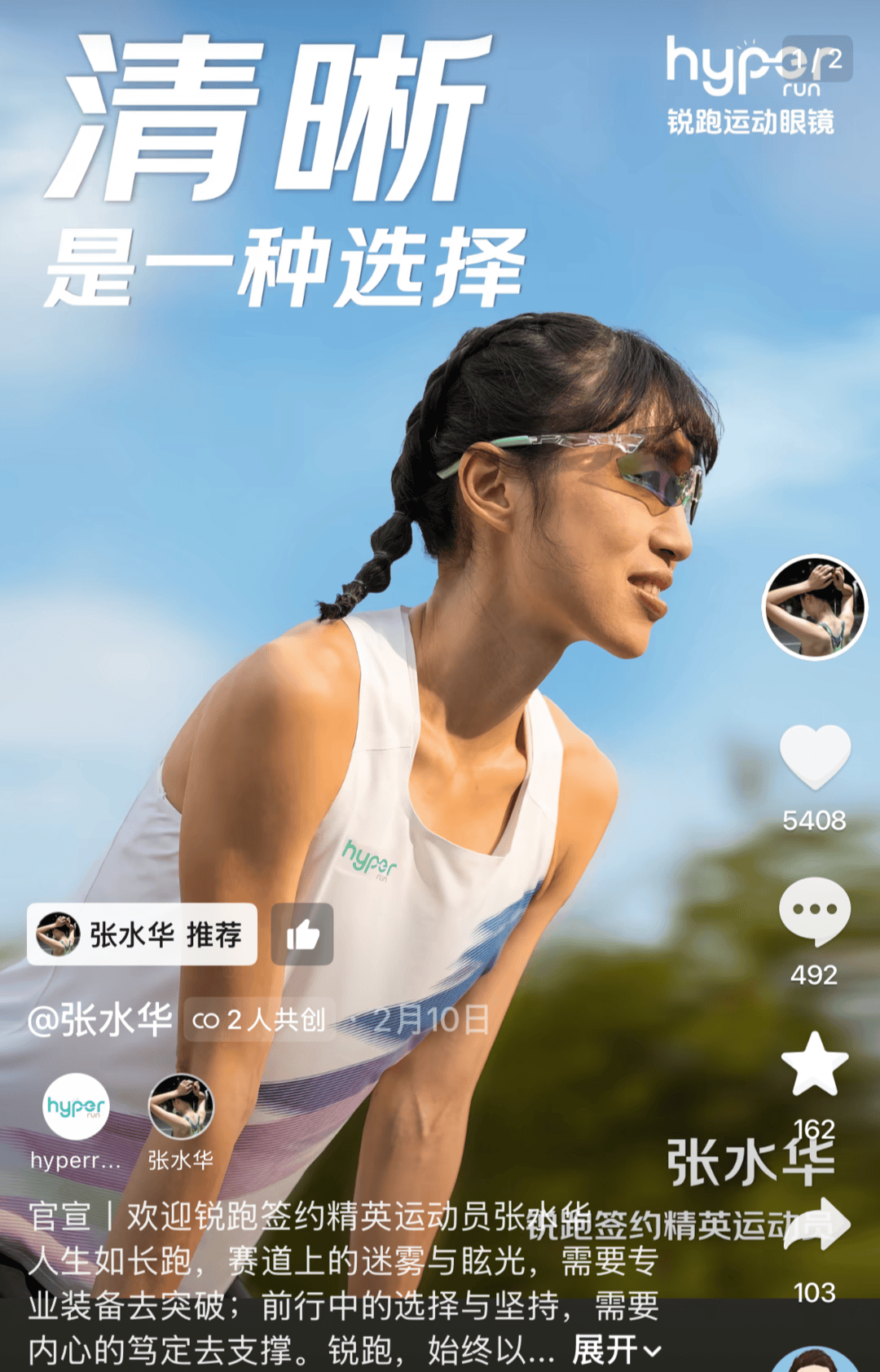 但2月份,担忧不攻自破,张水华连续拿下签约。2月10日,运动眼镜品牌锐跑(HYPER RUN)官宣签约;五天后,2月15日,特步宣布她成为官方签约运动员;紧接着第二天,2月16日,山东家装品牌林荫大道完成签约——“一周三签”。