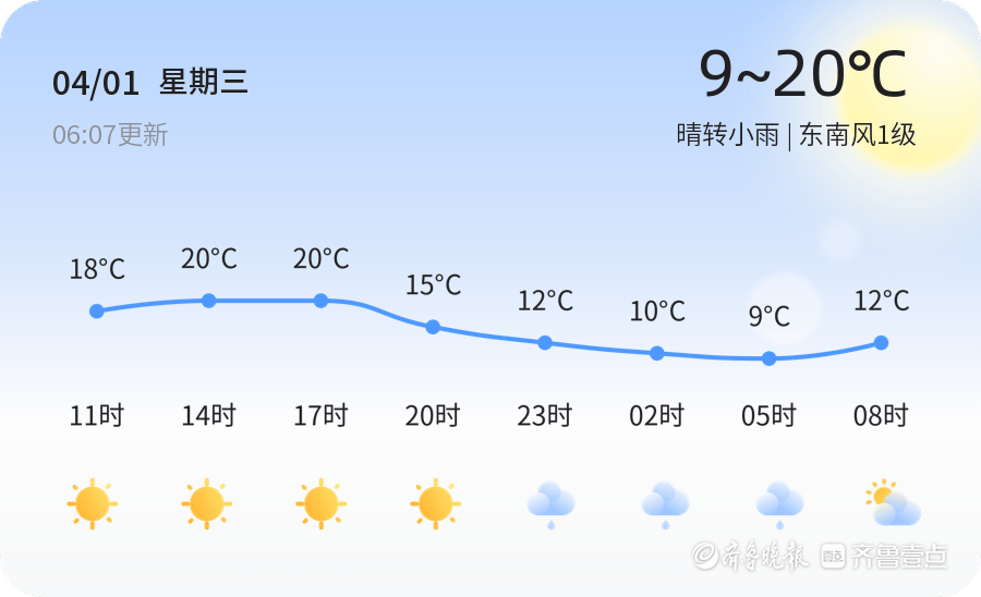 今天是4月1日,星期三,农历二月十四,也是西方传统的愚人节。愚人节起源于欧洲中世纪,通常在这一天,人们会互相开玩笑、愚弄他人,但也要注意分寸,避免伤害他人感情。今日聊城各区天气以晴转小雨为主,气温在9℃至20℃之间,东南风1级,空气湿度高达98%,pm2.5指数为145,建议市民注意防雨和呼吸道防护。