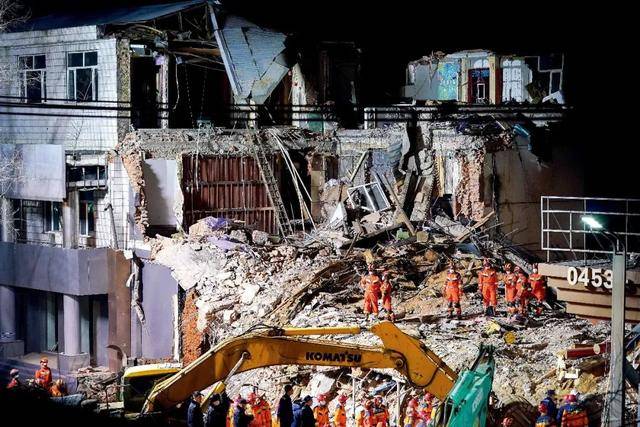 3月29日,黑龙江省海林市海林镇建筑坍塌救援现场。图/中新