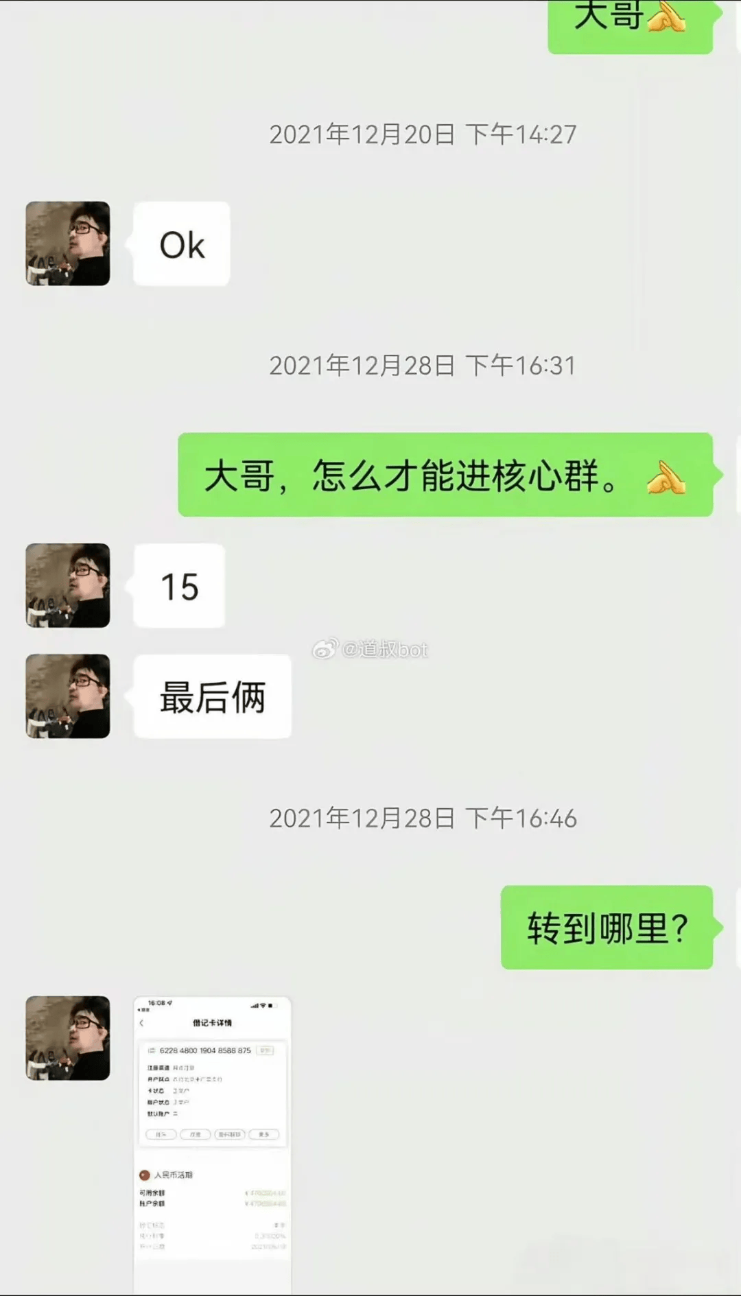 接着,群里就有人晒出了盈利截图。群友们很快就相信了,可后来才知,那个晒截图的是他的托。