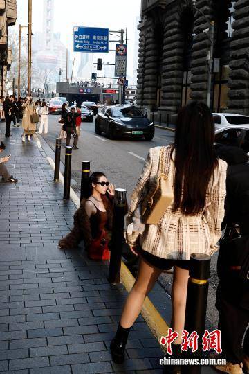 4月1日,游客在上海市黄浦区圆明园路街头拍照。