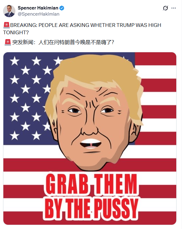 面对市场的极度困惑,宏观对冲基金Tolou Capital Management创始人Spencer Hakimian在社交平台上的发言,甚至演变为了极其错愕的情绪化质疑:“突发:人们现在都在问,特朗普今晚是不是‘嗨了’(High)?”